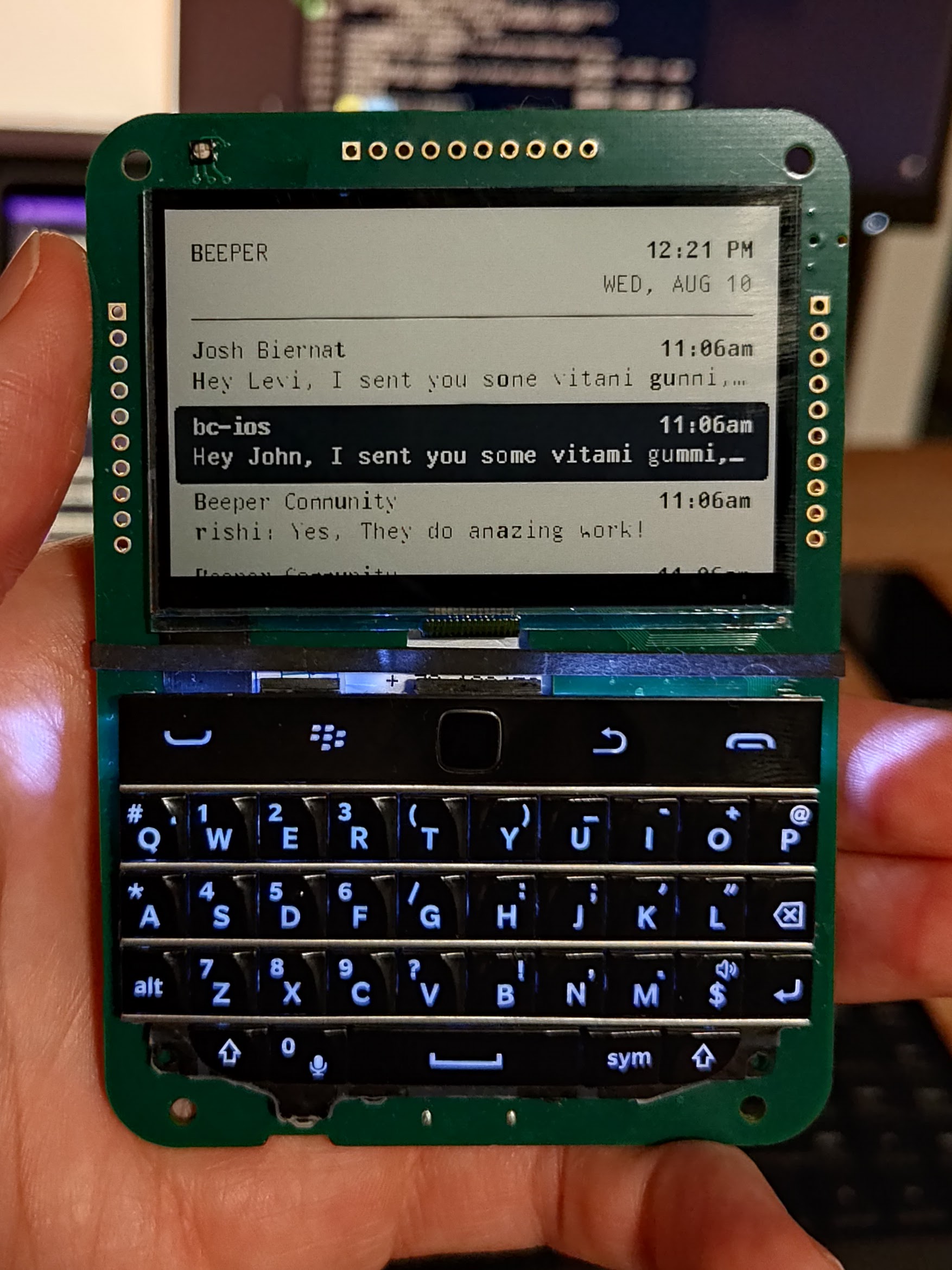 Oh and as a fun side project we are building a real Beeper beeper. It might be the very first dedicated Matrix device? Itβs basically a Blackberry for Matrix, with an e-paper display (same tech as Pebble) πΒ https://twitter.com/ericmigi/status/1558137599893524480 If you are a hacker who wants to build something with it, I have a few extra that I might be able to give out. Send me a message with a convincing argument π